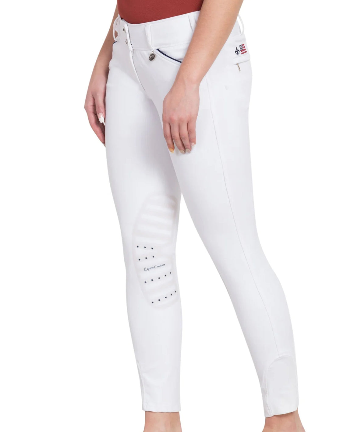 These breeches combine performance and everyday comfort for riders of all levels. Designed with silicone knee patches for confident leg contact and a sock bottom that creates a smooth, streamlined fit, they deliver reliable grip and a flattering silhouette whether you're schooling or showing.