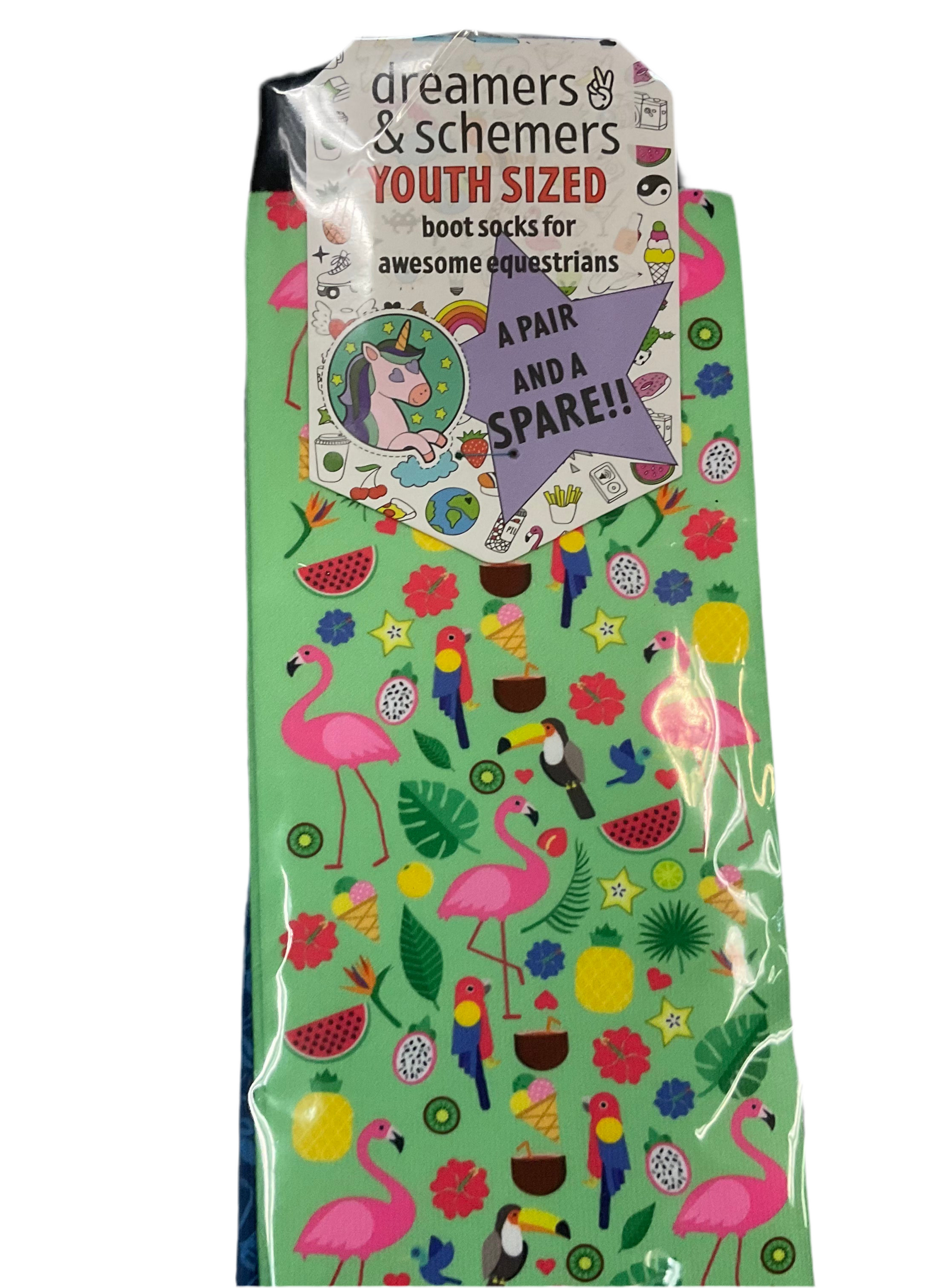 Welcome to Pony-land! Dreamers & Schemers has been making fun riding socks for adults since 2015, but 2025 is the year that we take over Pony-land! These sublimated socks are made the same as our Original Boot Socks, but shortened and narrowed for small but mighty pony riders! Get yourself a pair of Youth Socks from Dreamers & Schemers and you'll get a spare sock with every pair 🙌 That means that when you buy 2 pairs of socks you get a third pair FREE! Our Original Boot Socks aim to please! We've created a sock with superior construction and a comfortable fit wash after wash. A lightly padded foot bed that doesn't mess with the fit of your boots is paired with a flat seam toe for a smooth ride.