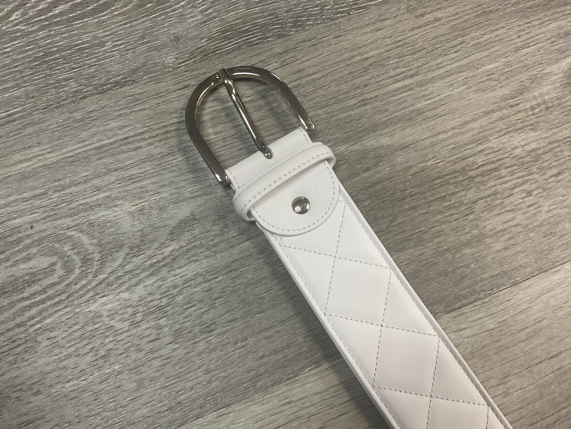 Quilted Leather C Belt is handmade in Italy from soft Italian leather. This wardrobe essential has a contoured fit to prevent gapping in the back. The classic quilted pattern adds style for schooling or showing. 2" wide.