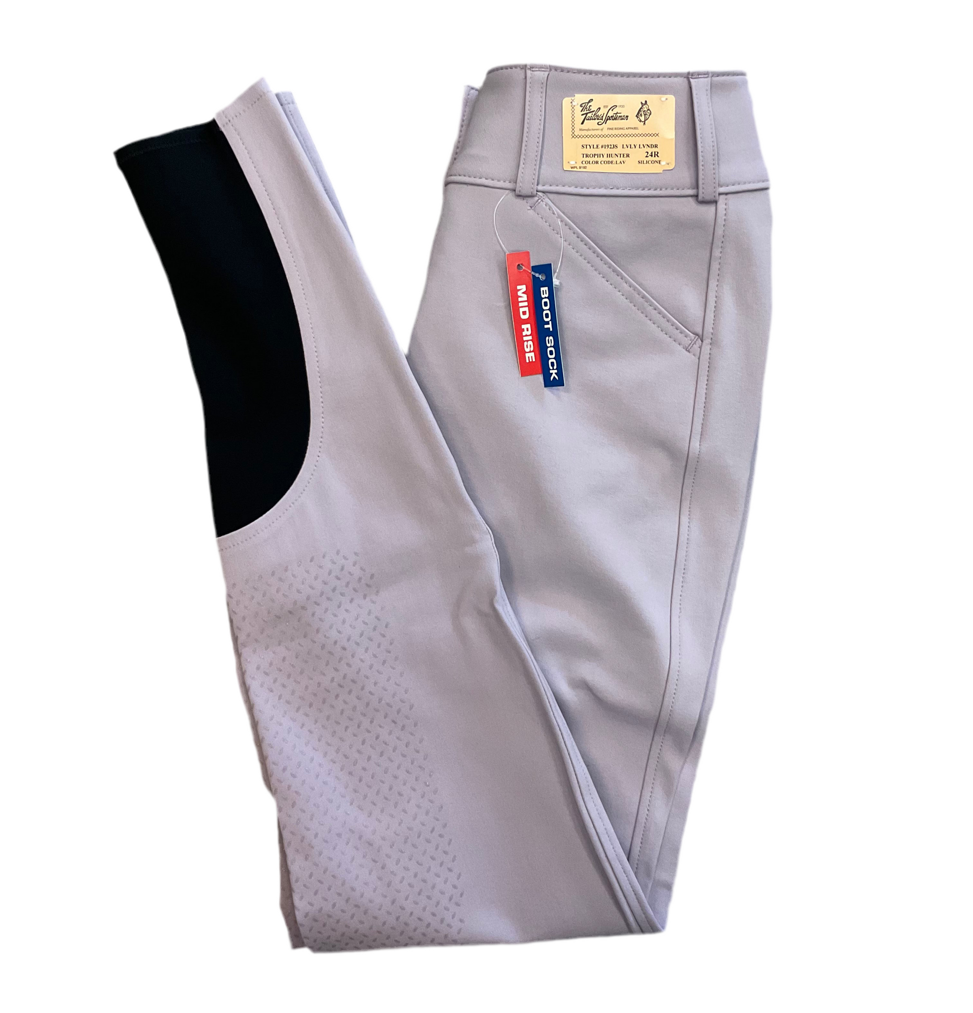 The Tailored Sportsman Mid Rise Silicone Knee Patch Breeches are made with the classic stretch cotton/nylon fabric blend you love plus new grip knee patches. You'll love this updated Trophy Hunter Breech with a boot sock lower leg, flattering mid rise fit, and faux back pocket detail.